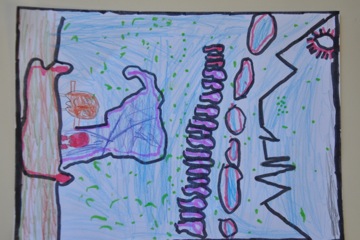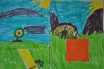 Ilana : Moi, je me languis de faire la veillée ludique parce que on peut lire des livres et jouer en silence. Sur le dessin, j'ai voulu faire du tir à l'arc, et manger à côté des marmottes. |